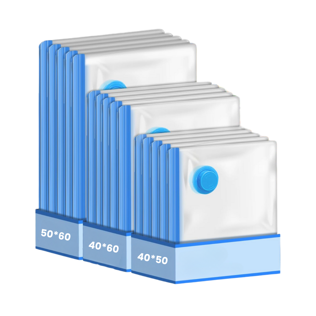 Estas bolsas al vacío con cierre ZIP doble permiten comprimir textiles de forma rápida y segura, reduciendo el volumen y manteniéndolos protegidos del polvo y los olores. Gracias a su válvula de doble sellado son compatibles con bomba eléctrica, y su material resistente permite reutilizarlas en cambios de temporada y viajes.