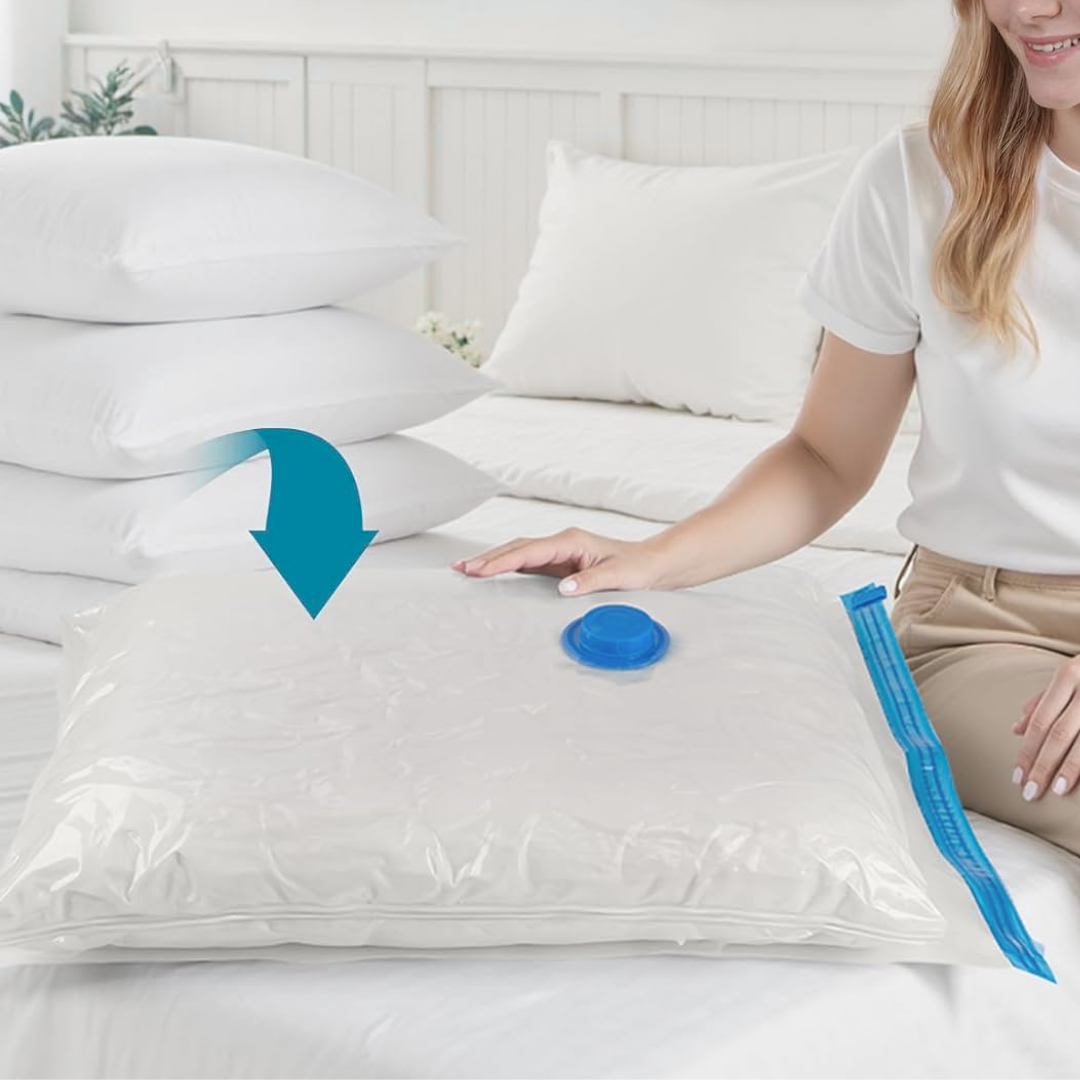Son perfectas para ropa, mantas, edredones, sábanas, chaquetas y textiles de temporada. Ayudan a ahorrar espacio en armarios, maletas o trasteros y mantienen el contenido protegido.