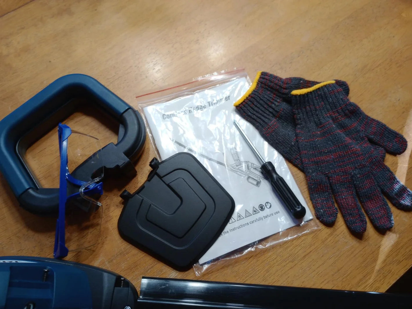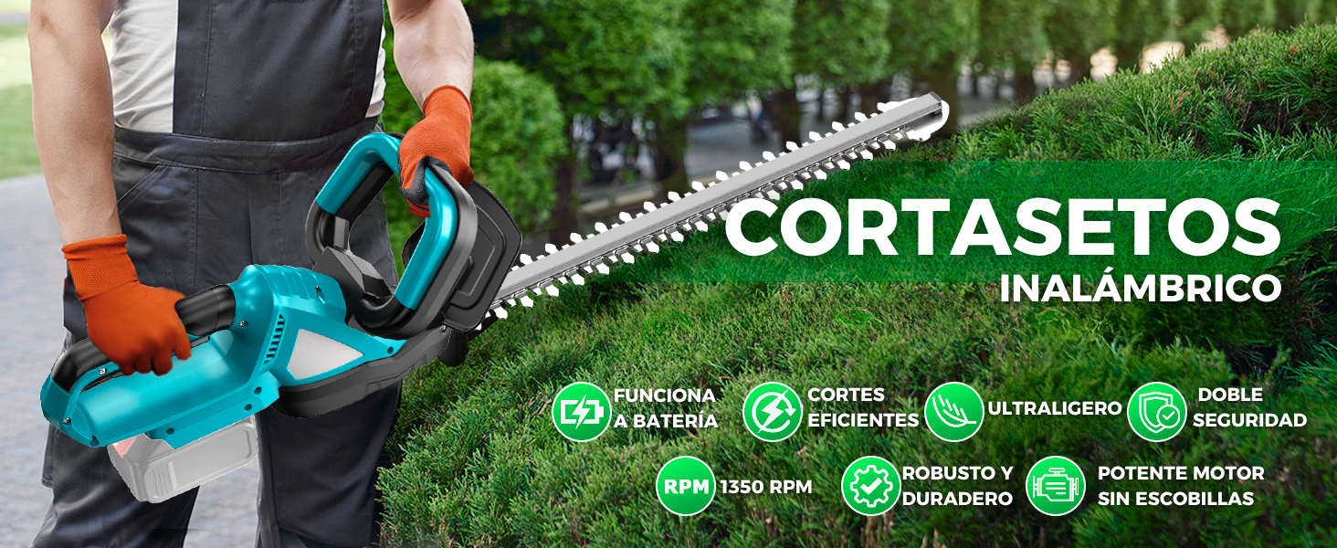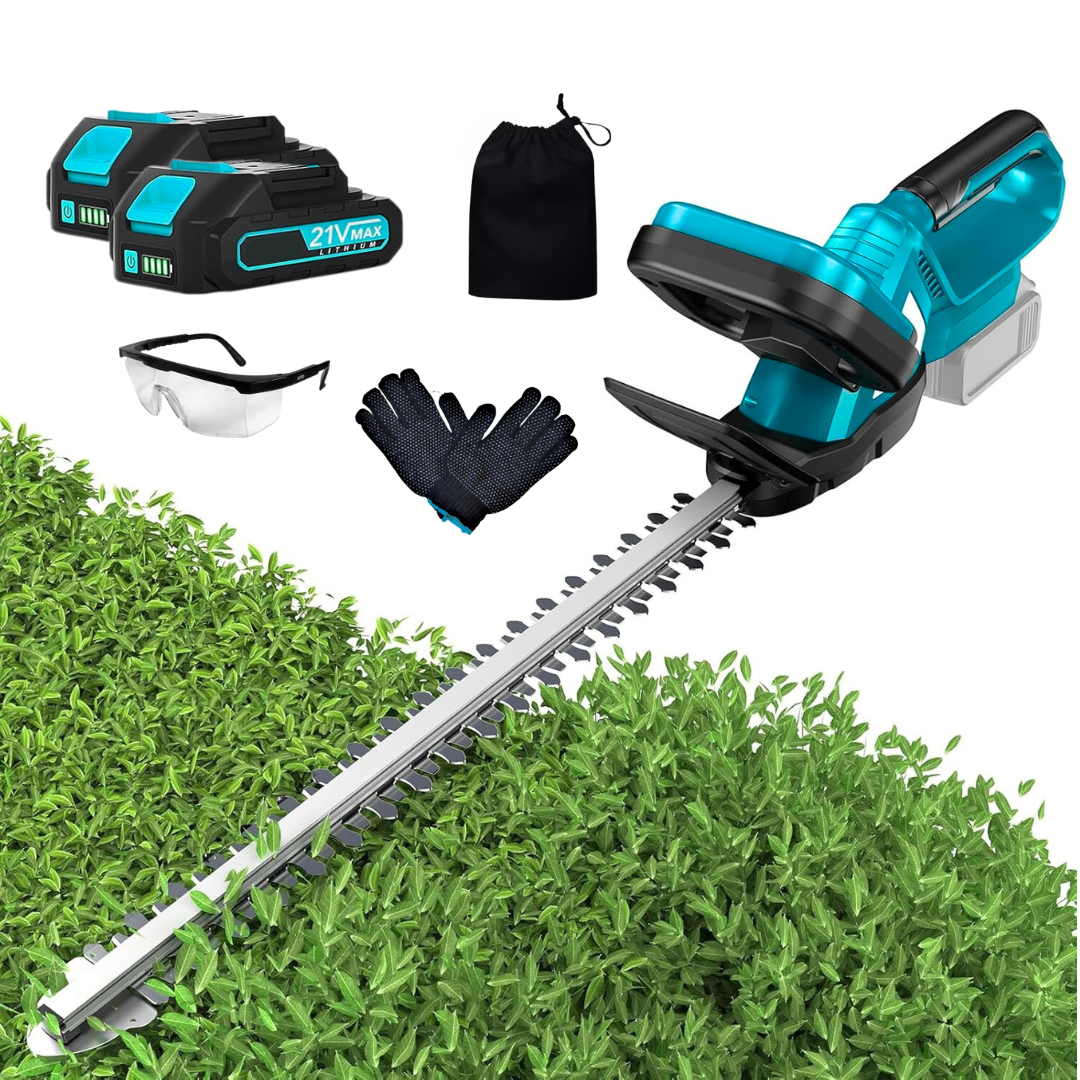 El paquete incluye el cortasetos, 2 baterías recargable, una funda, guantes para el trabajo y gafas de seguridad.