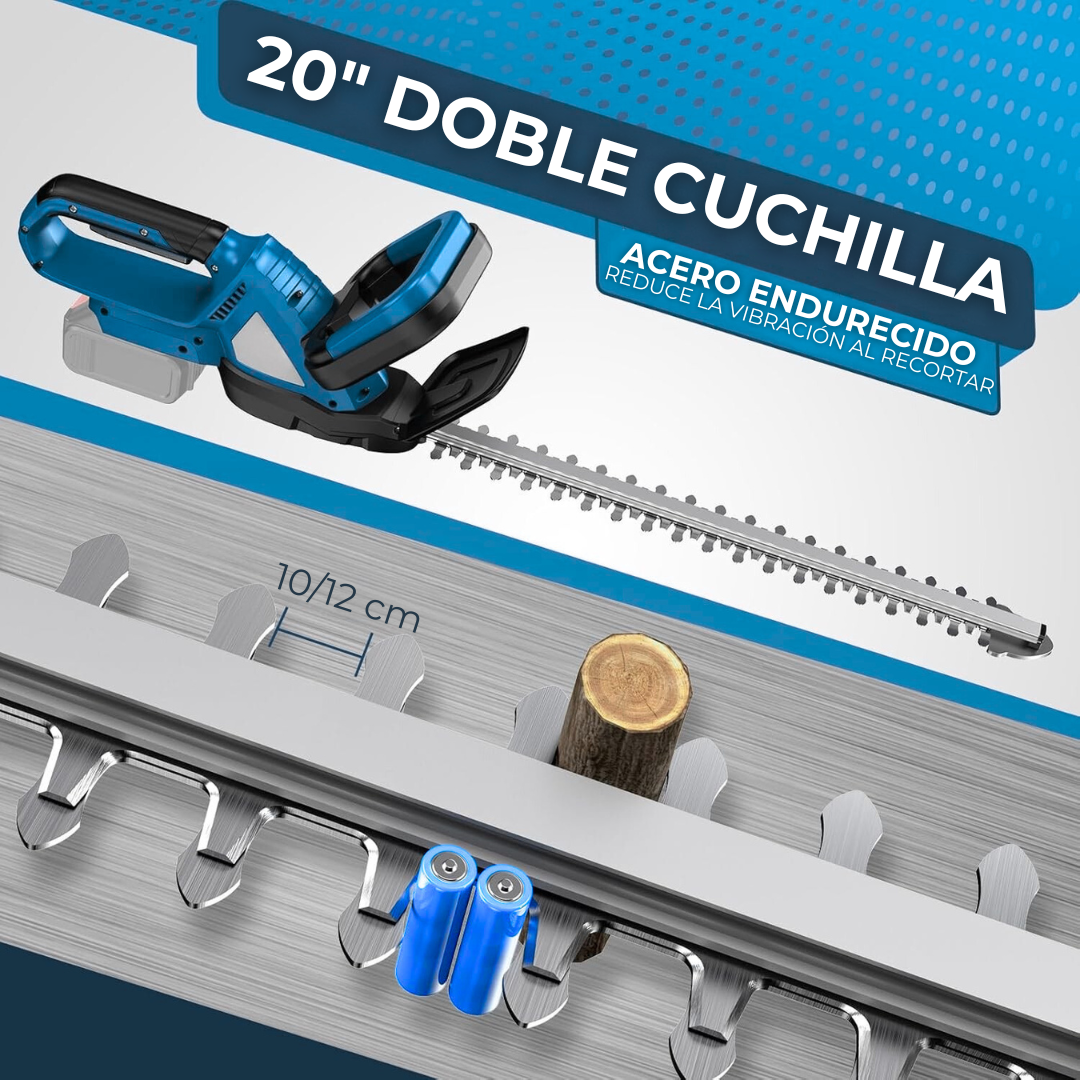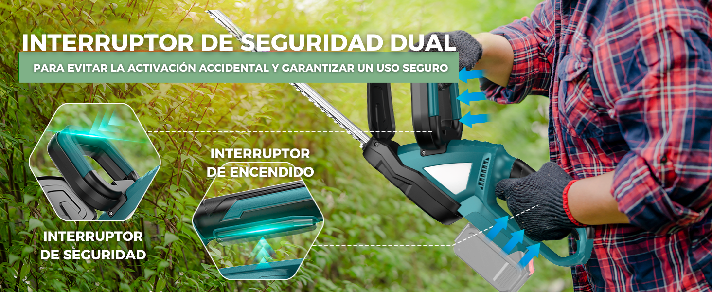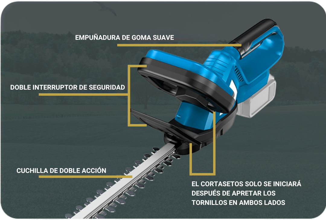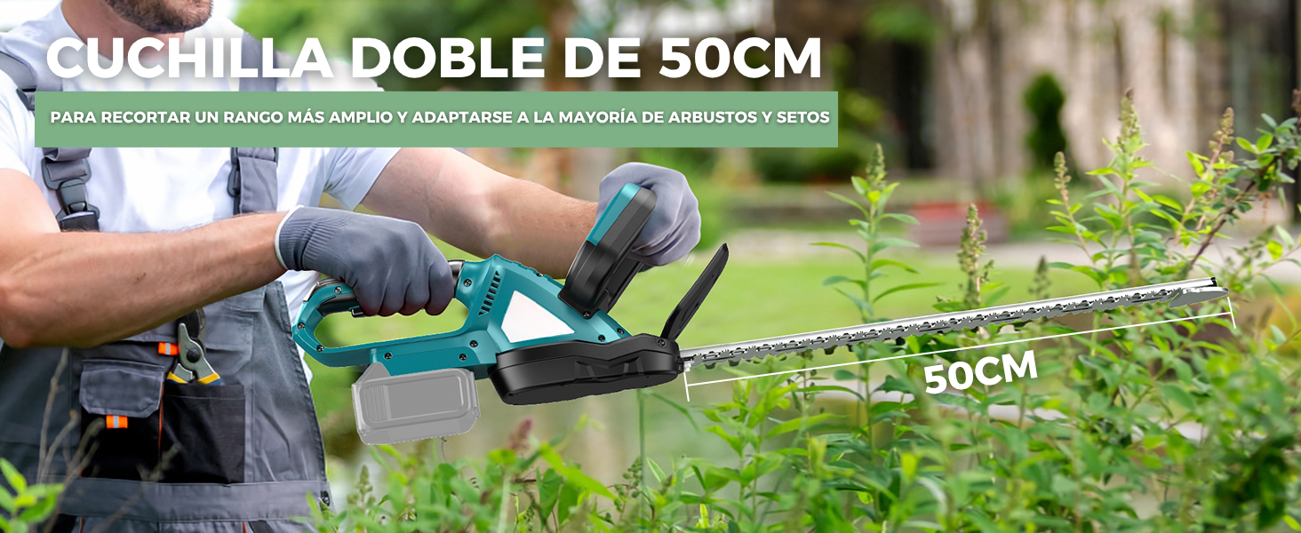 El paquete incluye el cortasetos, 2 baterías recargable, una funda, guantes para el trabajo y gafas de seguridad.