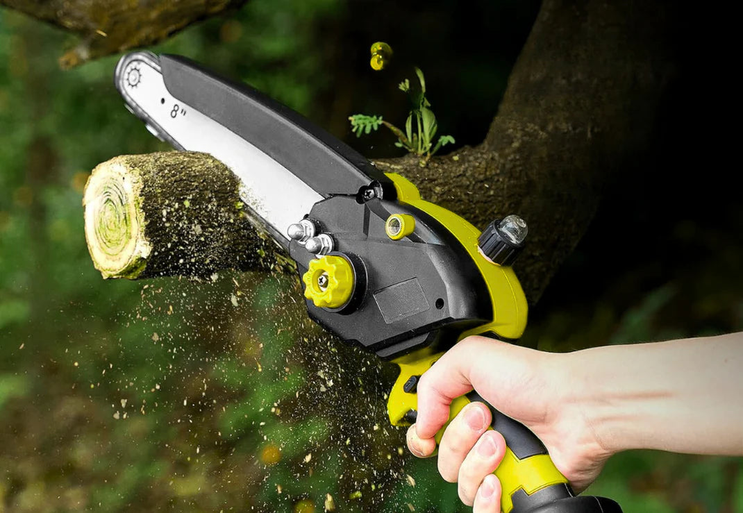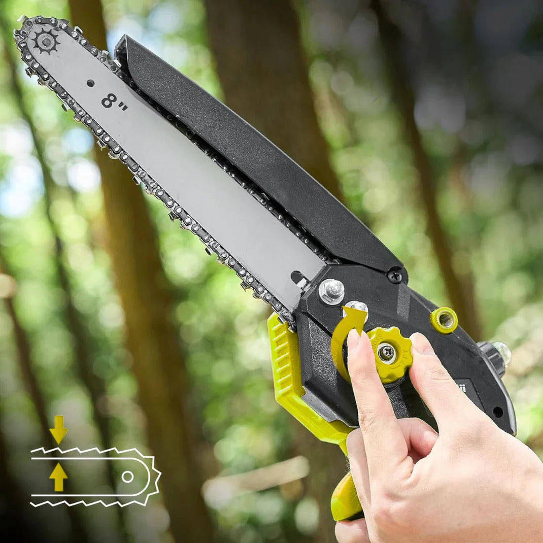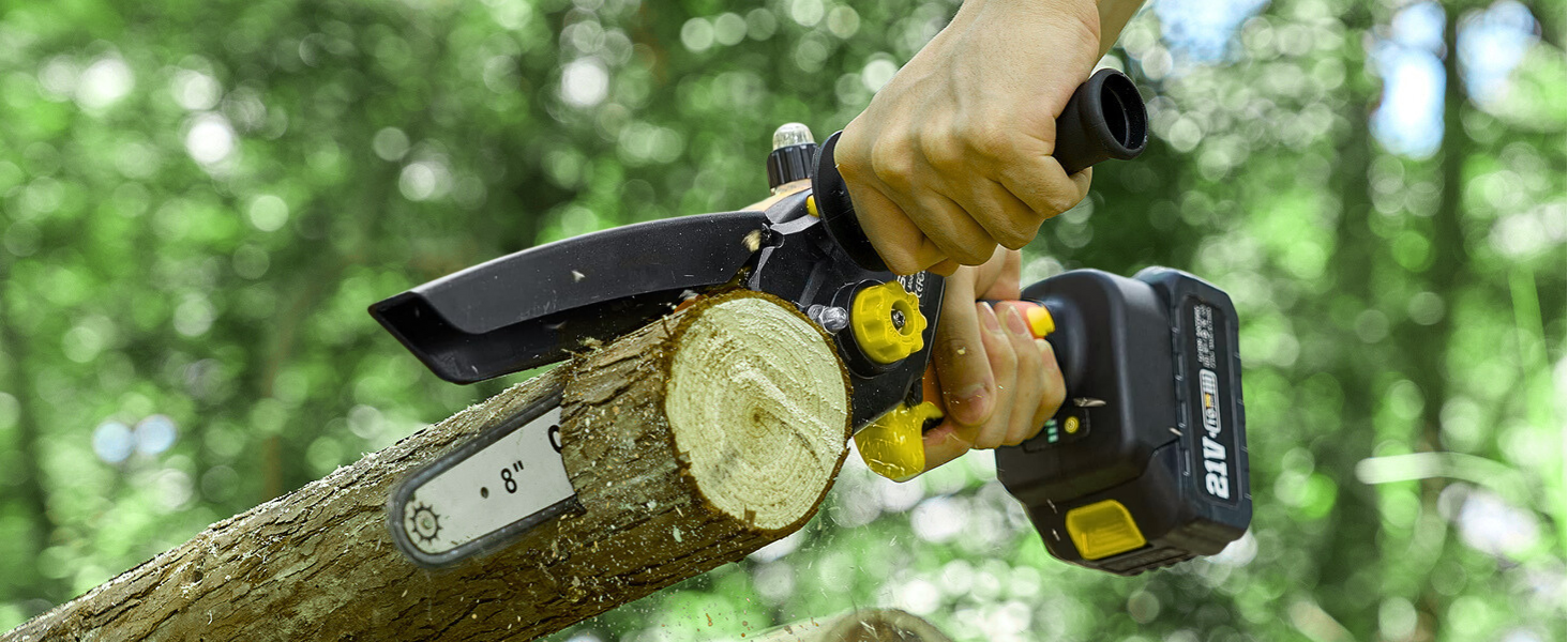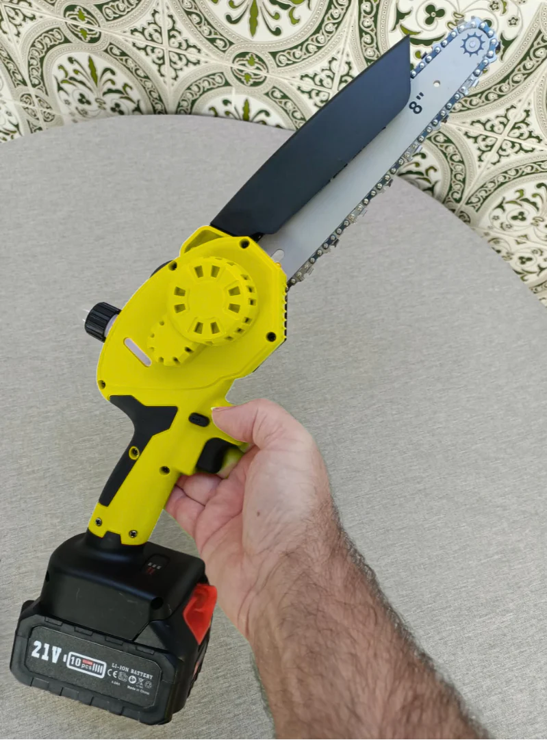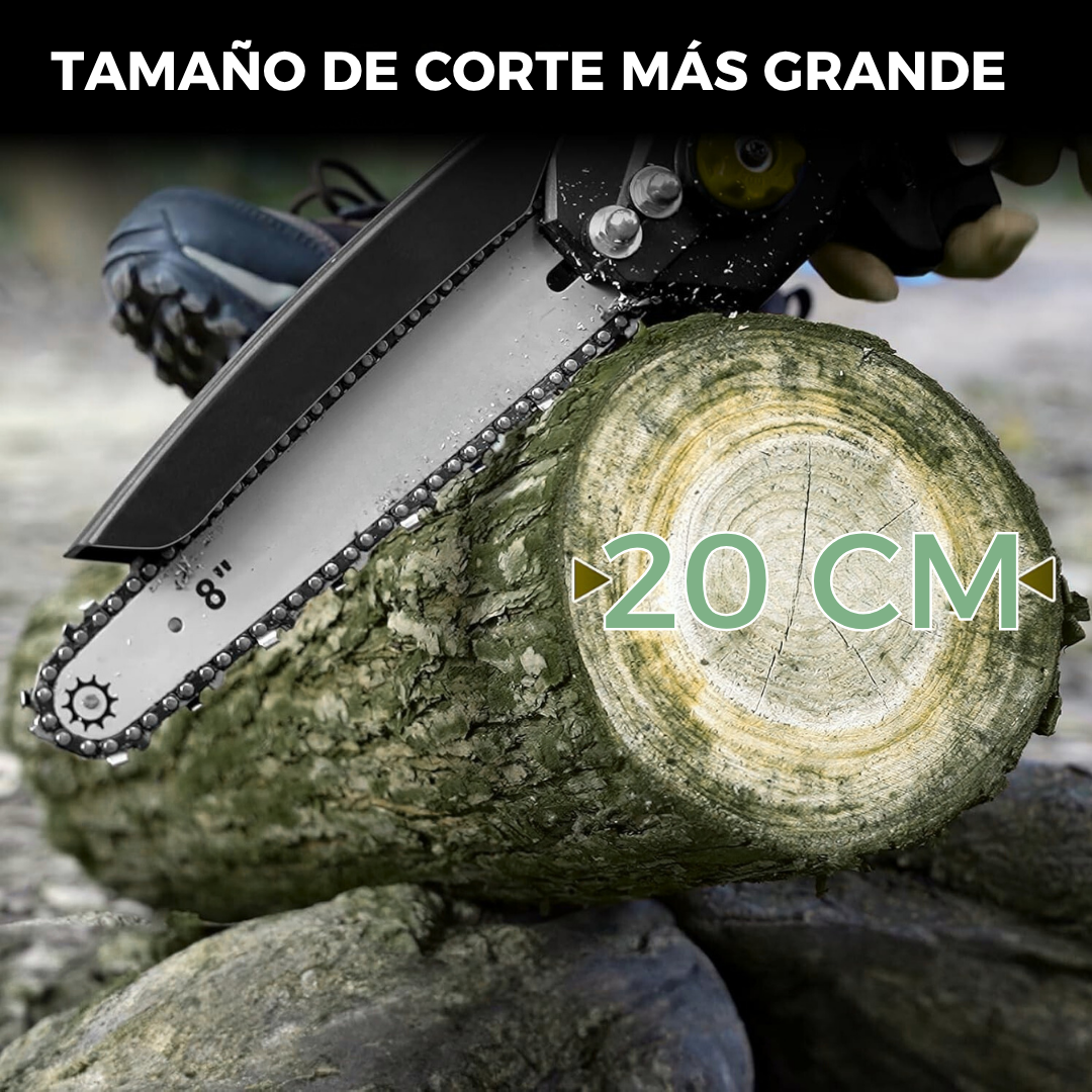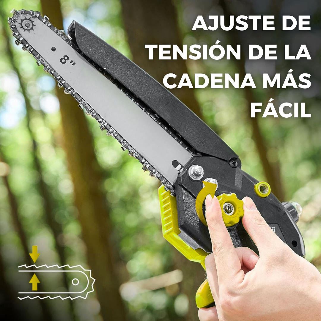 Su cadena de 20 cm puede cortar ramas y troncos de hasta 15 cm de diámetro sin esfuerzo.