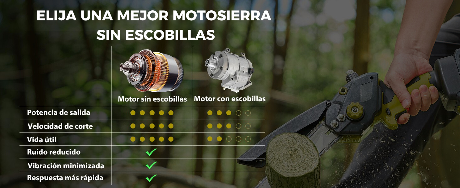 Su motor sin escobillas ofrece más potencia y velocidad de corte, reduciendo el esfuerzo y el tiempo de trabajo