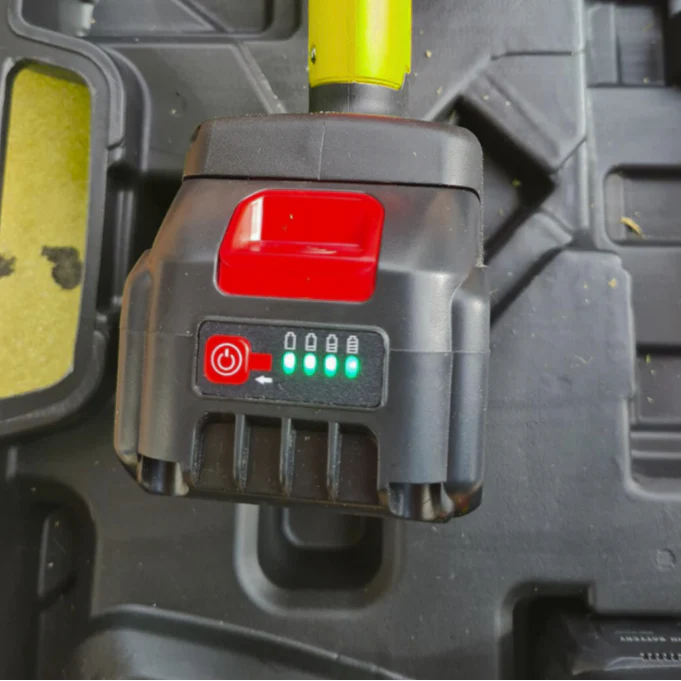 La batería de 21V y 4000mAh ofrece una autonomía de 40-60 minutos de uso continuo y se recarga en 1-2 horas.