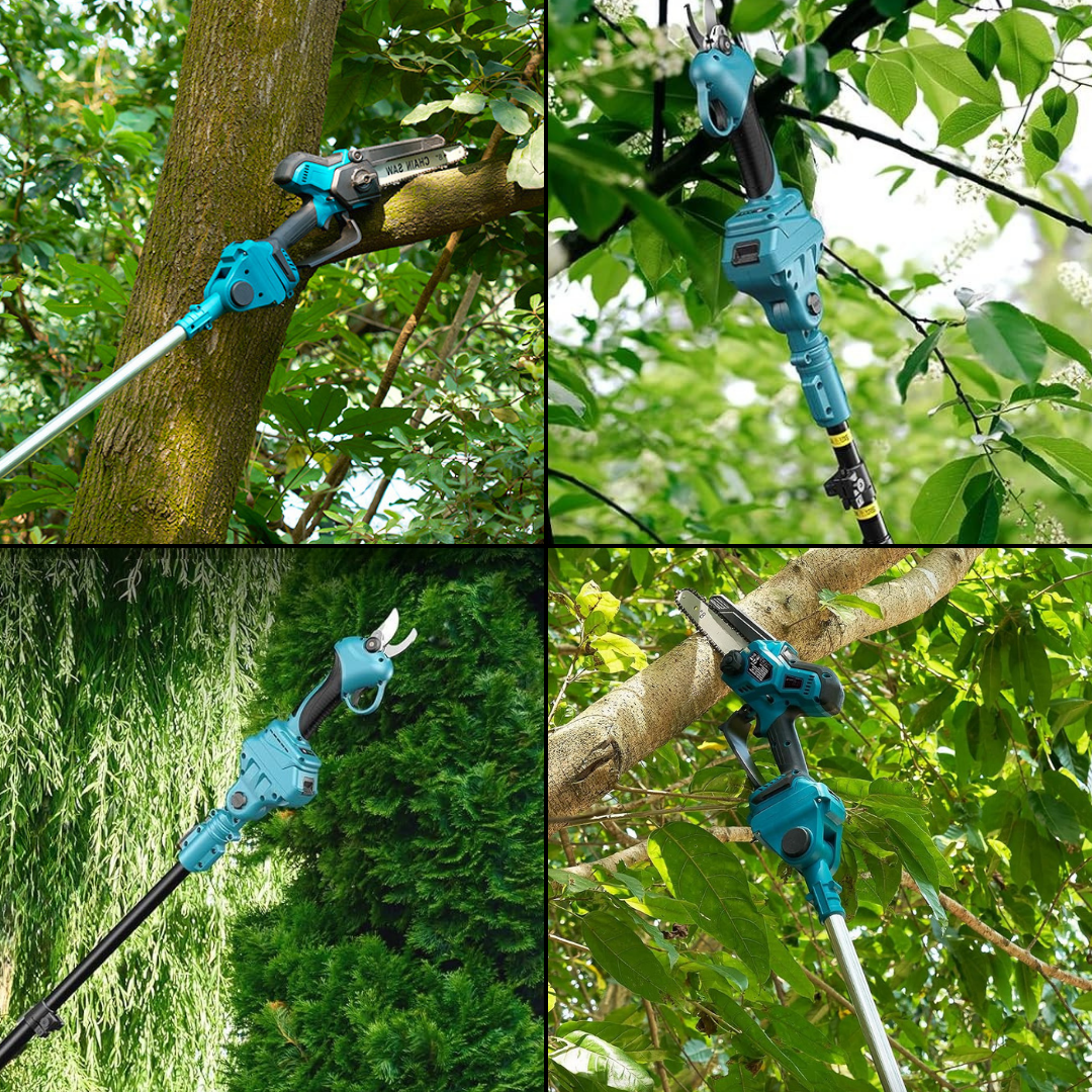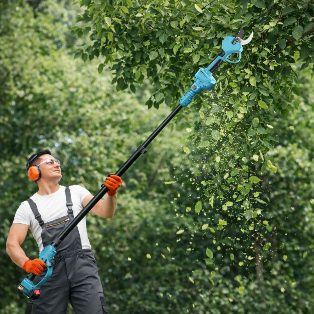 Sirve para alcanzar ramas altas sin necesidad de subirse a escaleras, mejorando la seguridad y facilitando la poda en árboles y zonas elevadas.